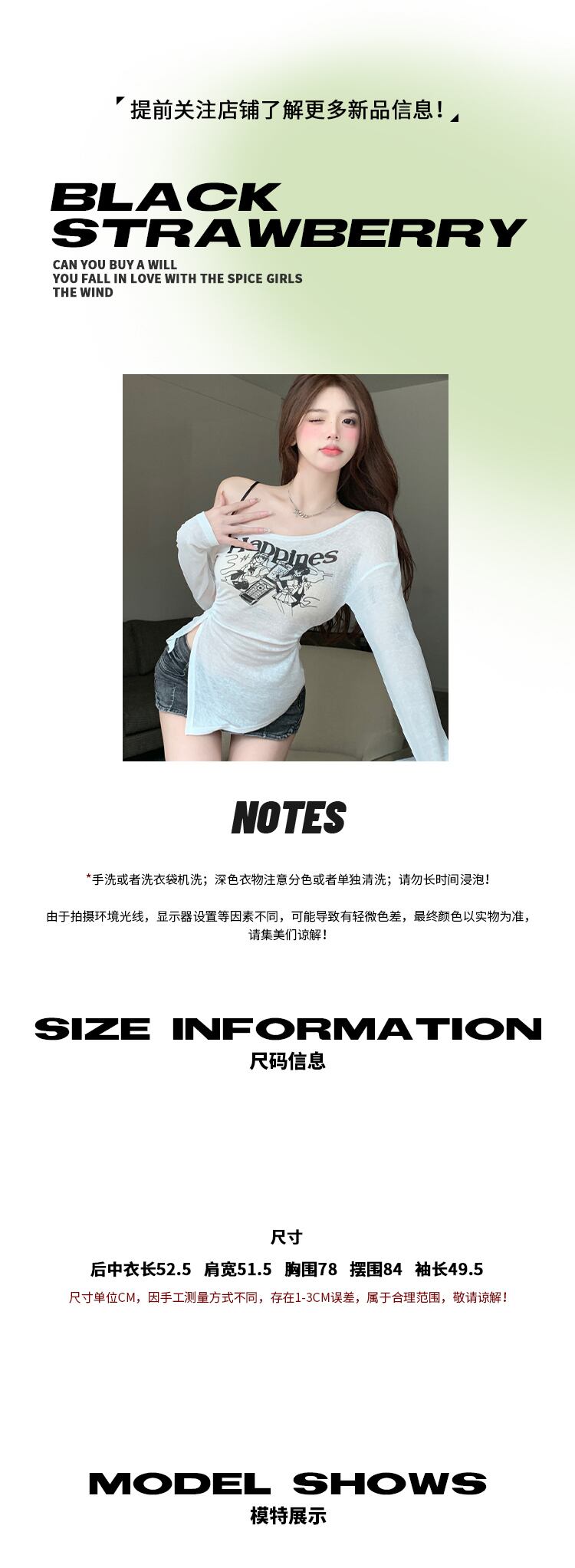 オフショルダーTシャツ女性の秋の純粋な欲望スタイルショート中空プリントセクシースリム長袖日焼け止めブラウストップ ロング オータム 秋物 ピュア bstraw11728335391 | beaute25