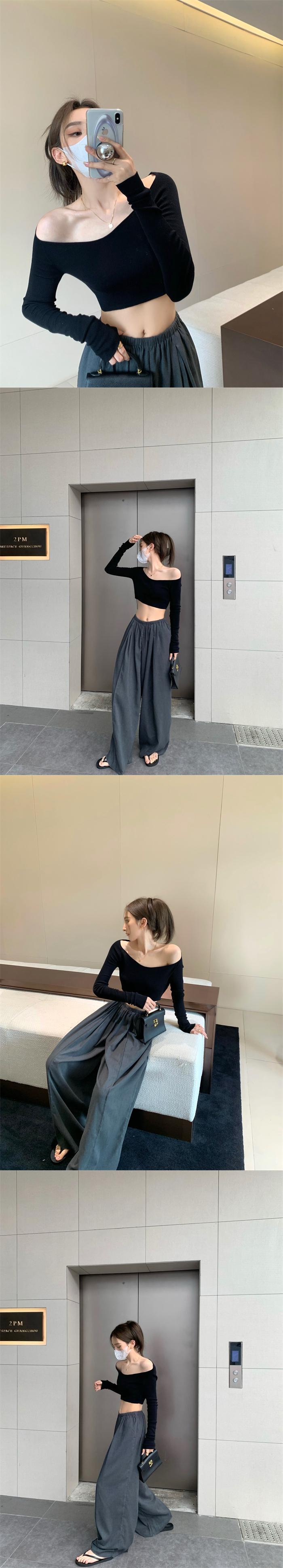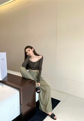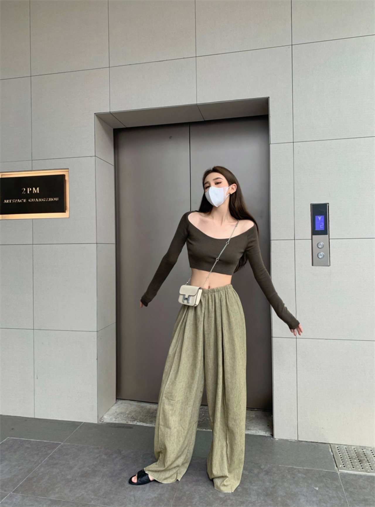 グリーン v ネック オフショルダー長袖 t シャツ女性の秋のショート スタイル小さな鎖骨タイトな日焼け止め底入れシャツ トップ ロング オータム 秋物 Vネック Tシャツ bstraw63423295023 | beaute25