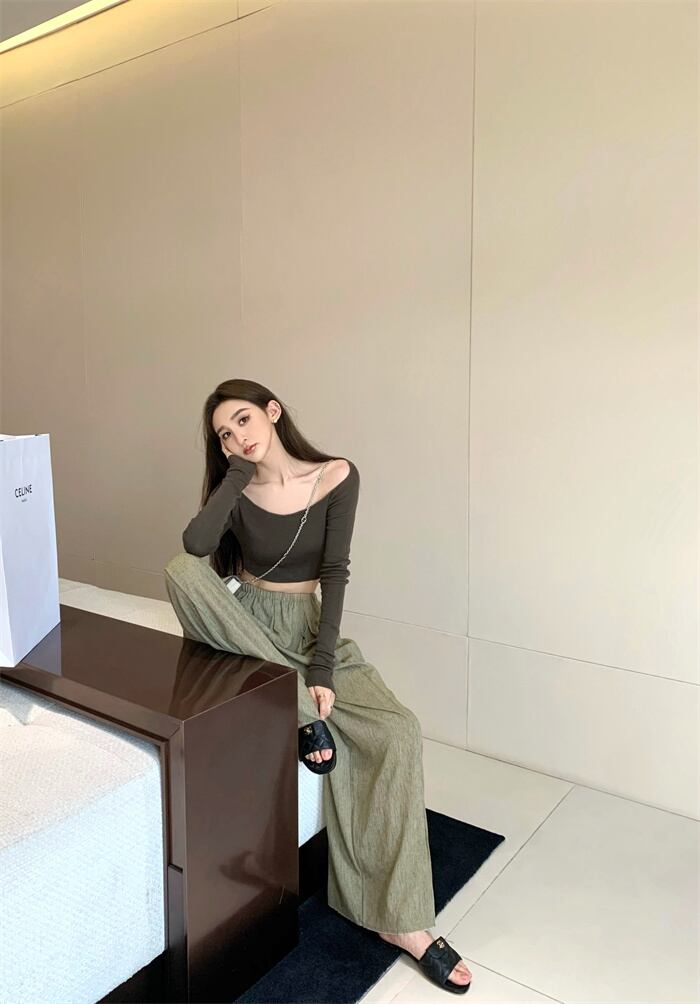 色:ブラックトップ,コーヒーグリーントップ,グレーパンツ,カーキグリーンパンツ