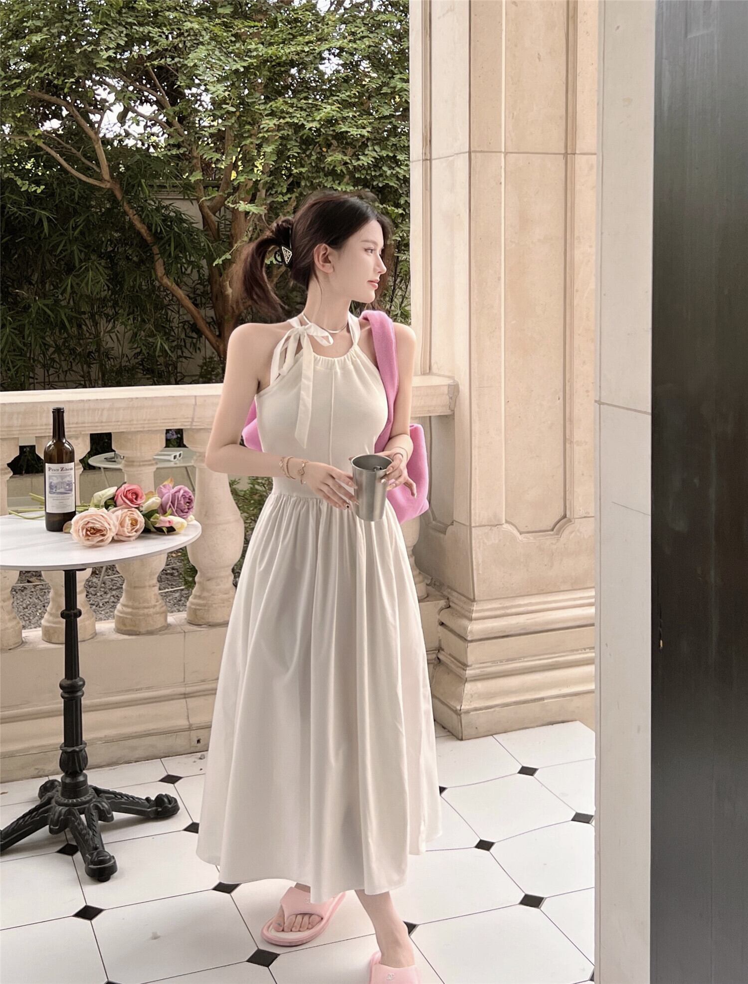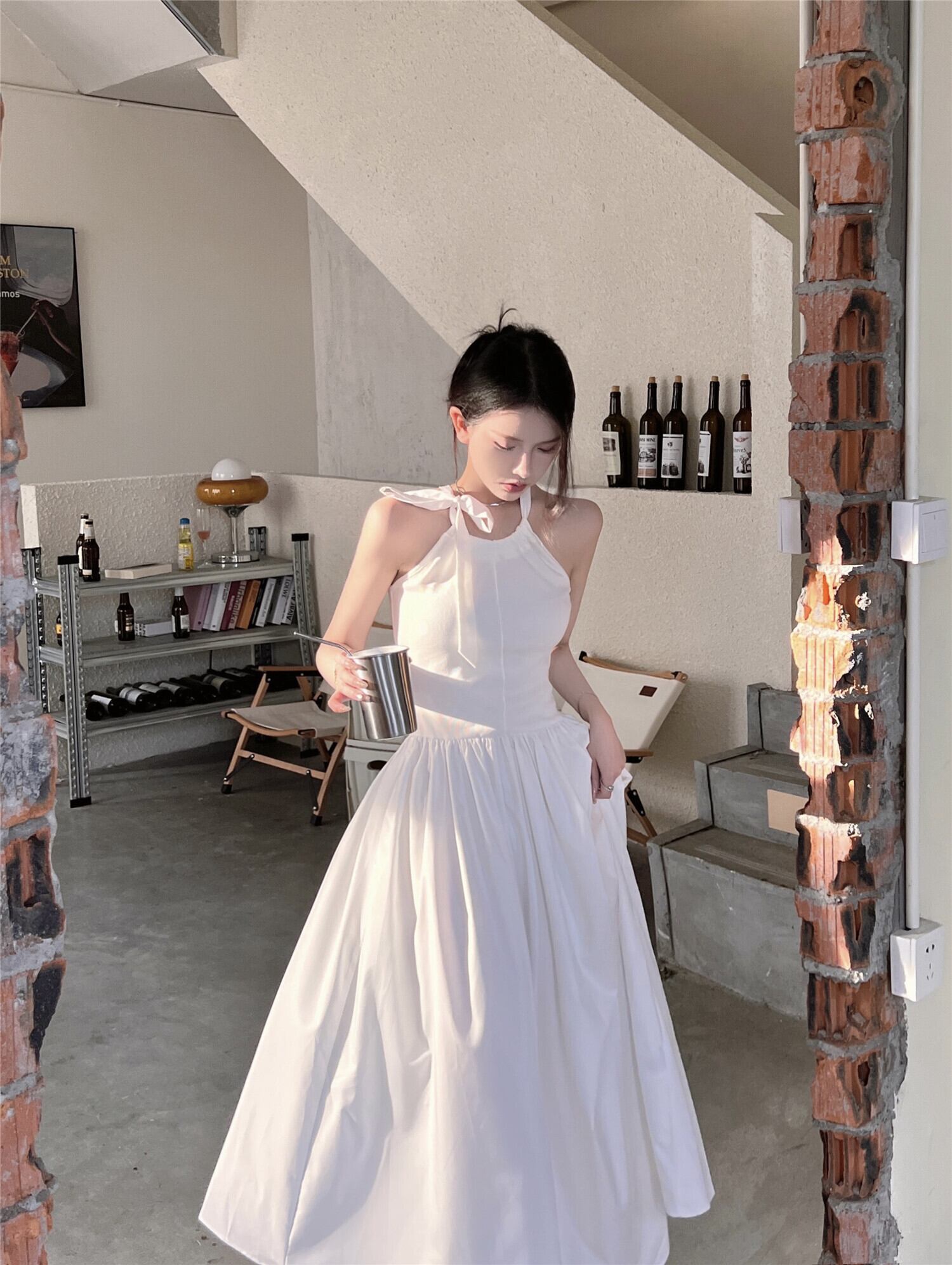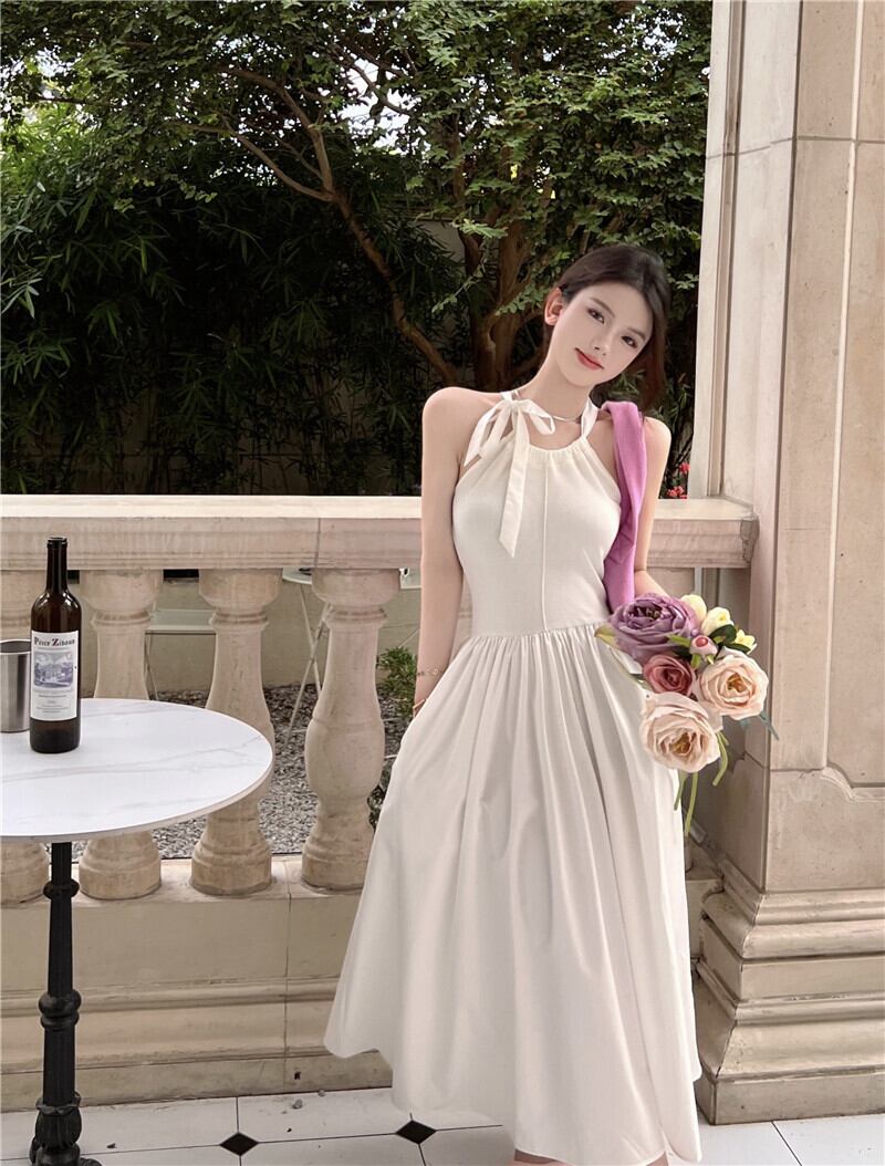 フランスのサスペンダードレスの女性の夏の白いハイエンド感ストラップレスホルターネックノースリーブウエスト気質ミッドレングススカート ホワイト サマー 夏物 bstraw54122609862 | beaute25