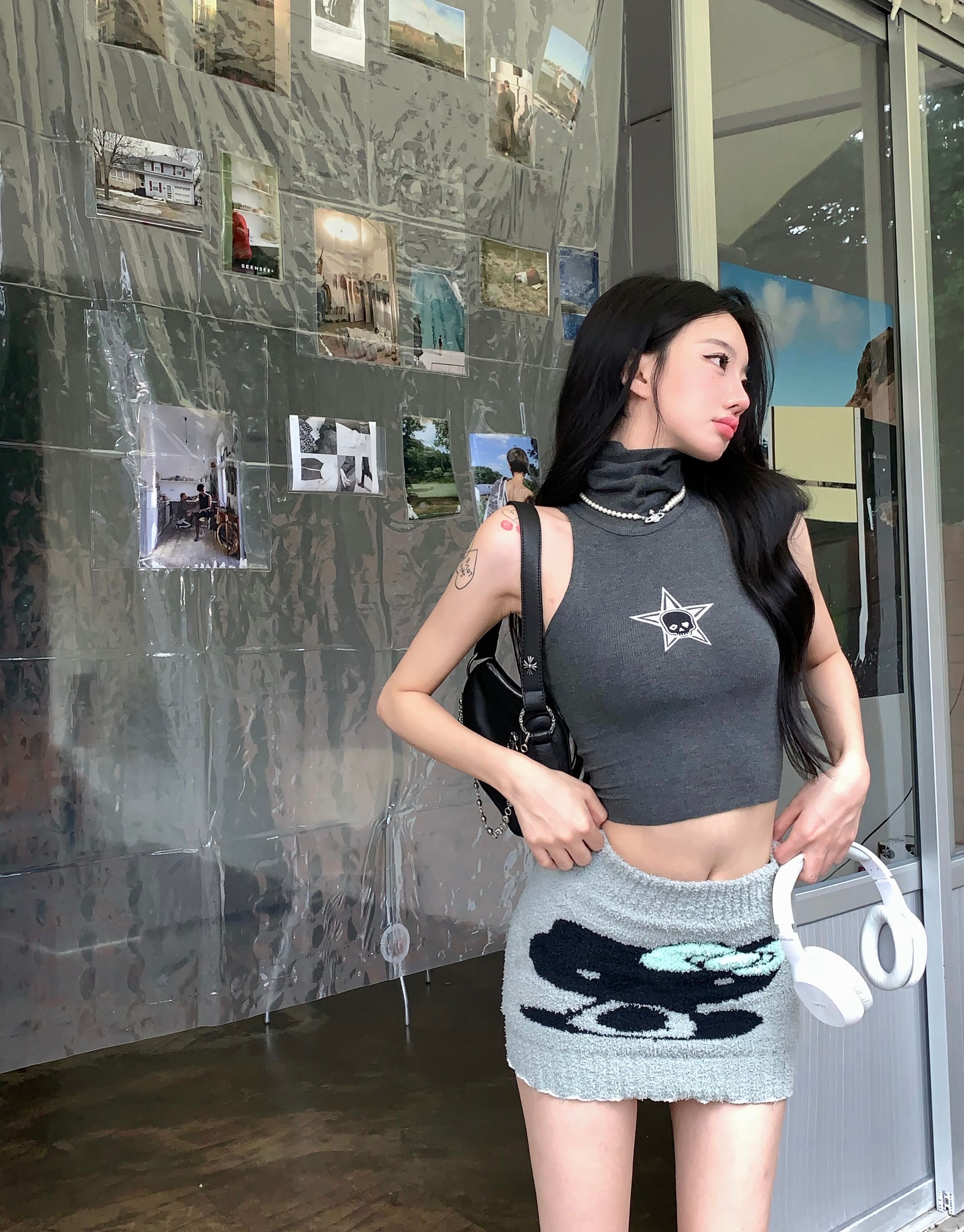 グレー タートルネック キャミソール レディース 夏 デザインセンス ニッチ セクシー ノースリーブ ショート アウター ホルタートップ サマー 夏物 bstraw25488778849 | beaute25