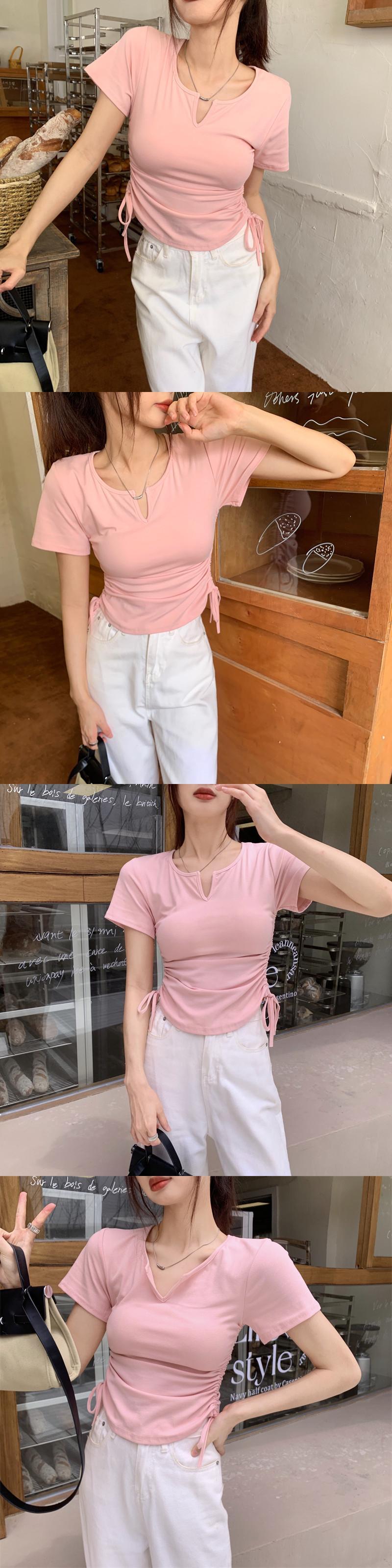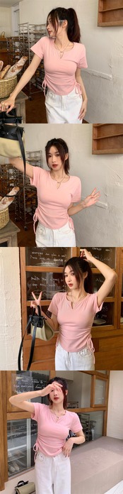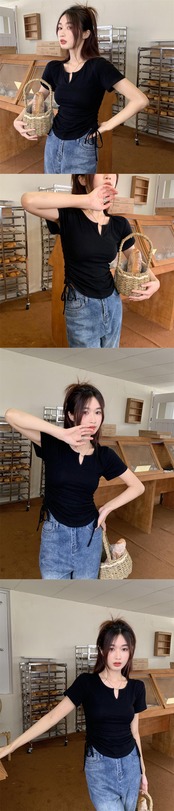 純粋な欲望の風緑のVネック半袖Tシャツの女性の2022年夏の新しいバージョンのドローストリング不規則な短いトップ ショート サマー 夏物 グリーン bstraw21178930326 | beaute25