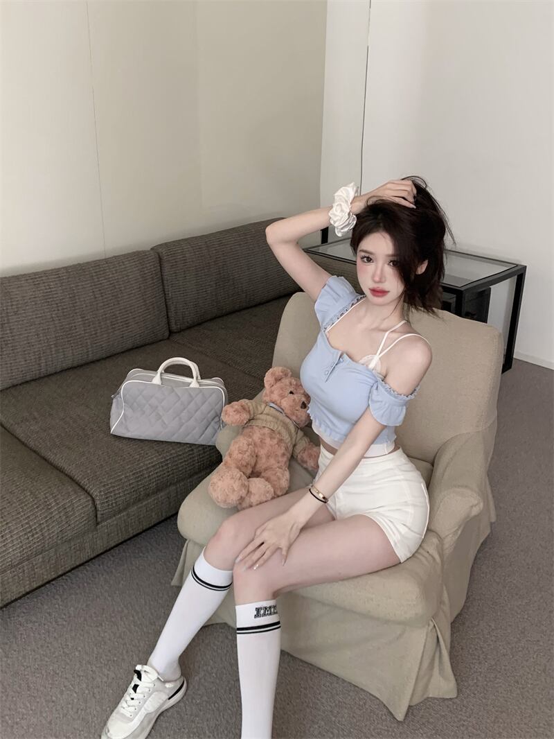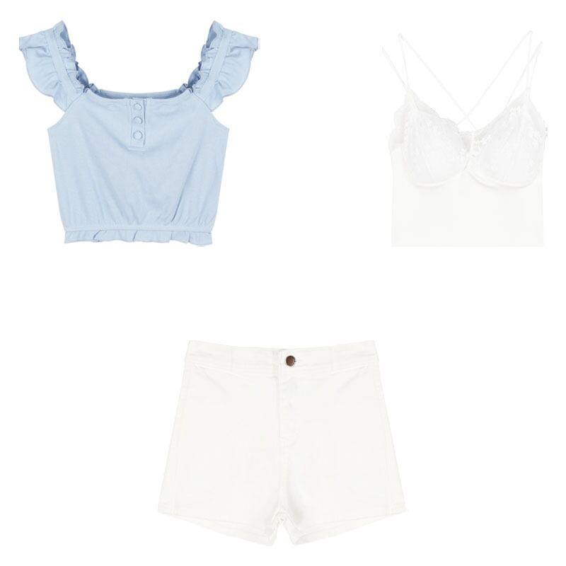色:レーススリング,ミルクブルートップ,ショートパンツ