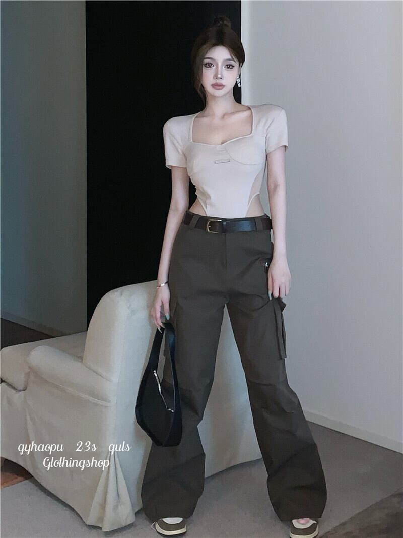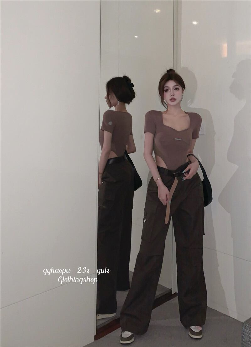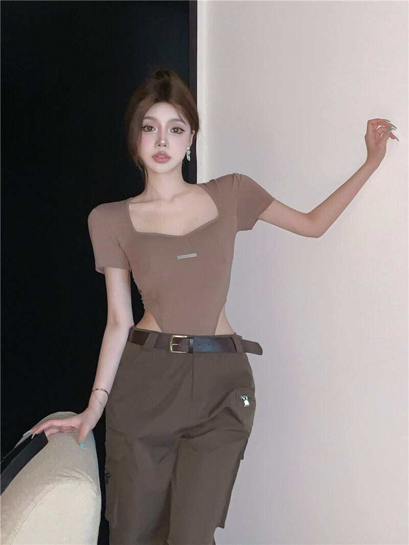 イレギュラー ワンピース Tシャツ レディース 夏 デザインセンス ニッチ 半袖 スクエアネック タイト セクシー ショート トップス サマー 夏物 スクウェア bstraw31309667062 | beaute25