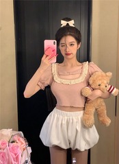 スイートスパイス レース レース ニット 半袖 T レディース 夏 ピュアデザイア パフスリーブ スクエアネック 七分丈 へそ セクシー ショート トップス ハーフスリーブ 大人ガーリー スウィート キュート カジュアル サマー 夏物 スクウェア bstraw58683652575 | beaute25