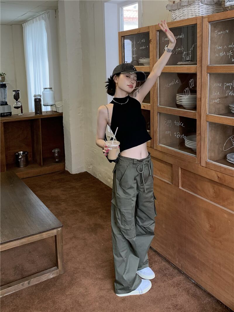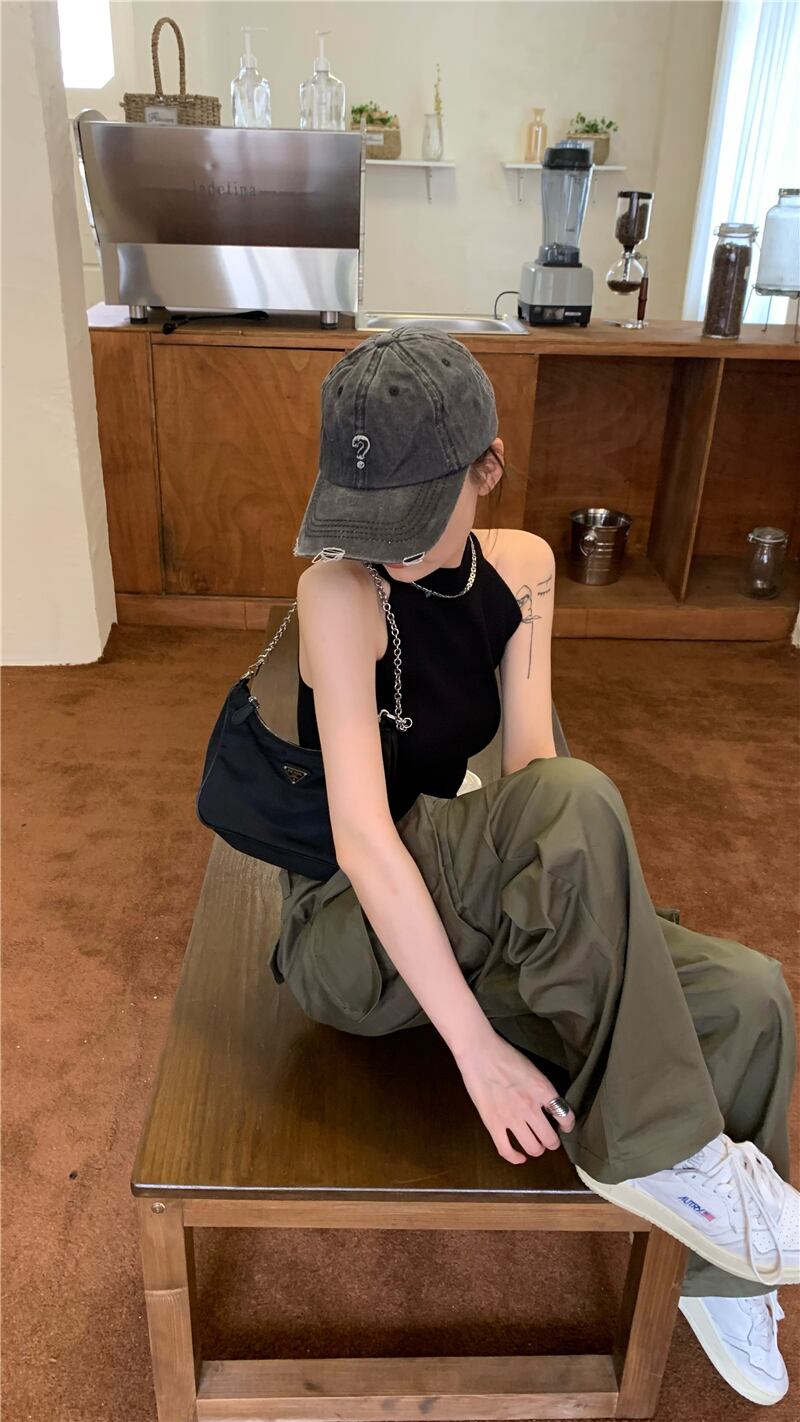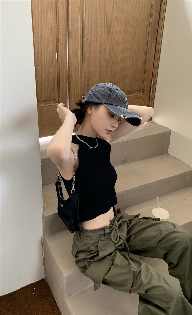 ホットブラックキャミソールベスト女性夏甘くてクールなホルターネックストラップレスセクシーなアウターウェアノースリーブスリムショートトップ 大人ガーリー スウィート キュート カジュアル サマー 夏物 bstraw69001792528 | beaute25
