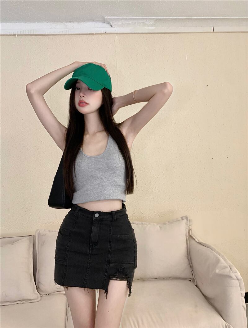 ローエッジリッピングデニムスカート女性の夏の黒のスカートハイウエストバッグヒップショー薄くて小さい弾性ショートスカート ハイウェスト ブラック エラスティック 伸縮 サマー 夏物 bstraw68353364858 | beaute25