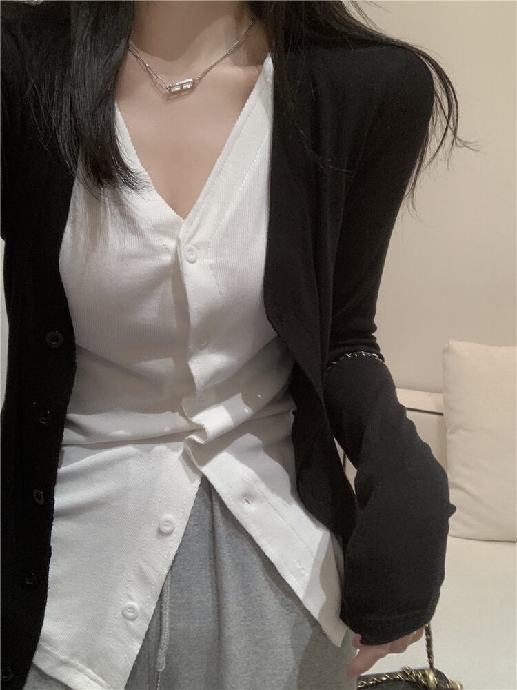フェイク ツーピース Tシャツ 女性 イン トレンド デザイン センス ニッチ ヒット カラー スリム 長袖 小さい カーディガン ジャケット 秋 ショート トップ ロング オータム 秋物 bstraw55434609905 | beaute25