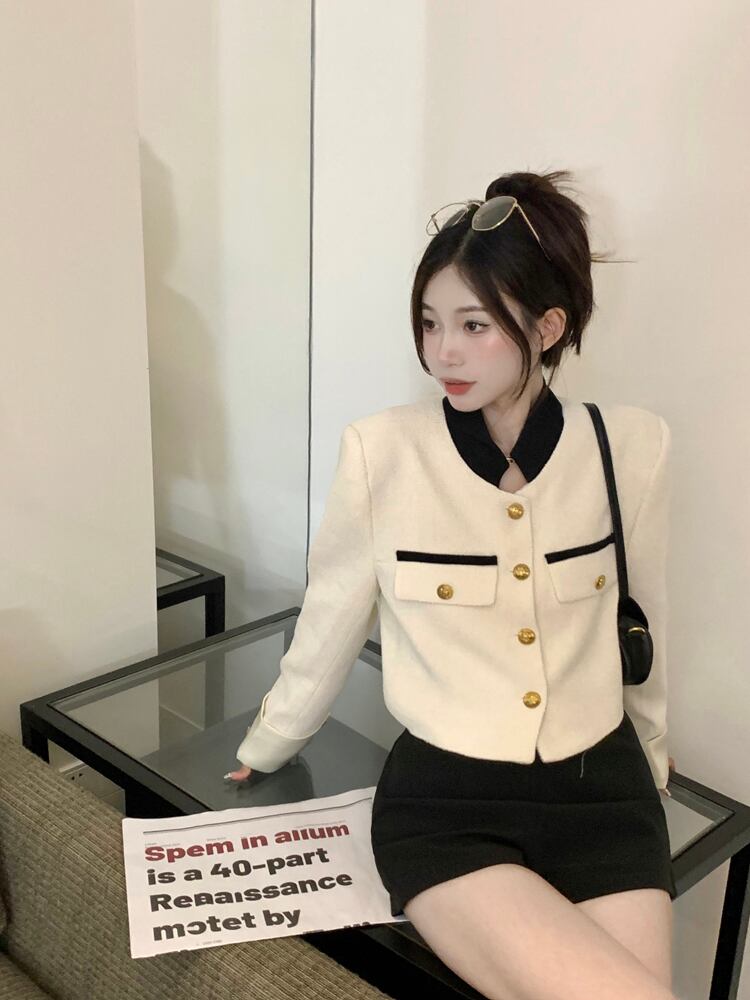 Xiaoxiangセレブスタイルショートコートレディース初秋ベージュホワイト高品質フライドストリートフレンチ気質シックな長袖トップ ロング オータム 秋物 bstraw44875831171 | beaute25