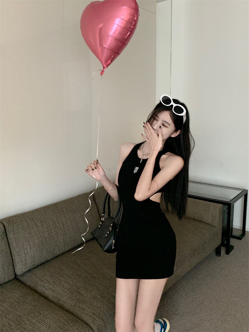ホットガール黒のセクシーなタンクトップドレスの女性の夏の小さな刺繍バック中空ショートスカートパックヒップスカート レッド ブラック サマー 夏物 bstraw55883241138 | beaute25