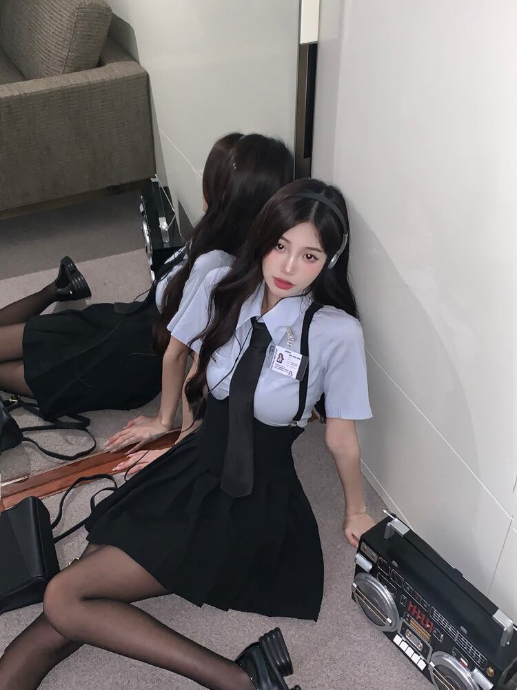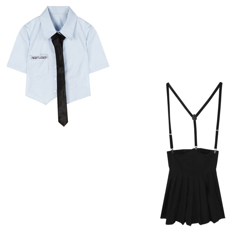 甘くてスパイシーなカレッジ スタイル jk ユニム スーツ ブルー半袖シャツ女性の夏のプリーツ サスペンダー スカート ツーピース 大人ガーリー スウィート キュート カジュアル サマー 夏物 bstraw28777325321 | beaute25