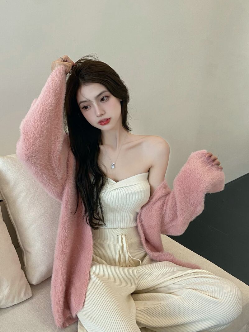 怠惰な風長袖ミンク フリース セーター女性の 2022 年秋の新しいルーズ デザイン ニッチ ニット カーディガン ジャケット ロング オータム 秋物 bstraw72666486262 | beaute25