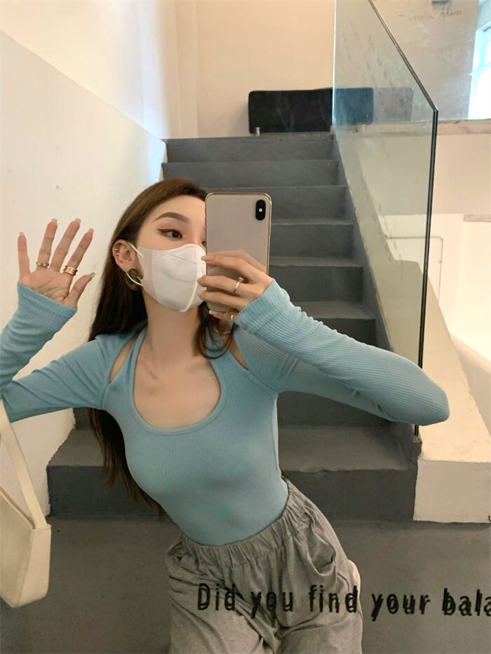 ホワイト スクエアネック ホルターネック 長袖 Tシャツ レディース 初秋風 純情風 セクシー デザイン タイト ボトムス シャツ トップス ロング オータム 秋物 ピュア スクウェア bstraw97065543335 | beaute25