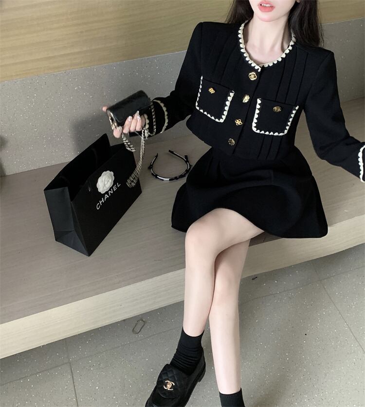 Xiaoxiangセレブスタイルのショートコートの女性の2022年秋の新しい黒のハイエンドスタイルのシックな長袖トップ ロング ブラック オータム 秋物 bstraw98864628663 | beaute25