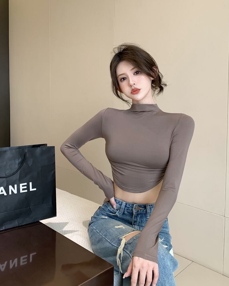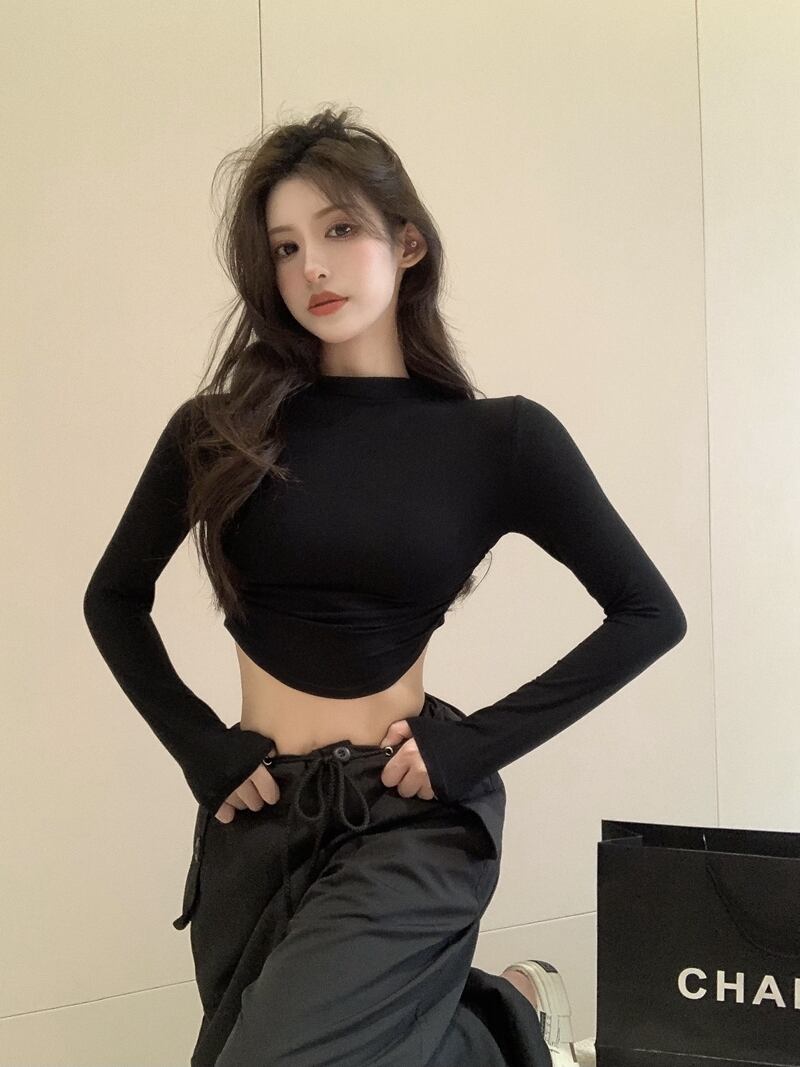 ピュアデザイアスタイル ハーフタートルネック 長袖 Tシャツ レディース 2022年秋 ブラック セクシー タイト ショート ボトムス シャツトップ ロング オータム 秋物 bstraw67416128295 | beaute25