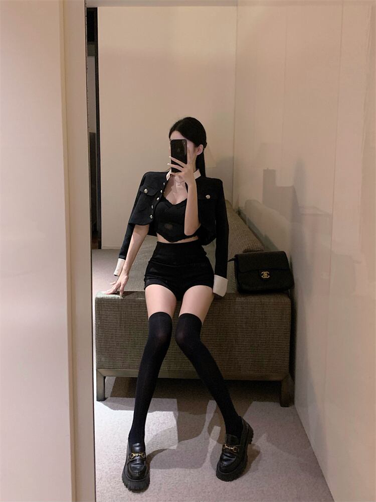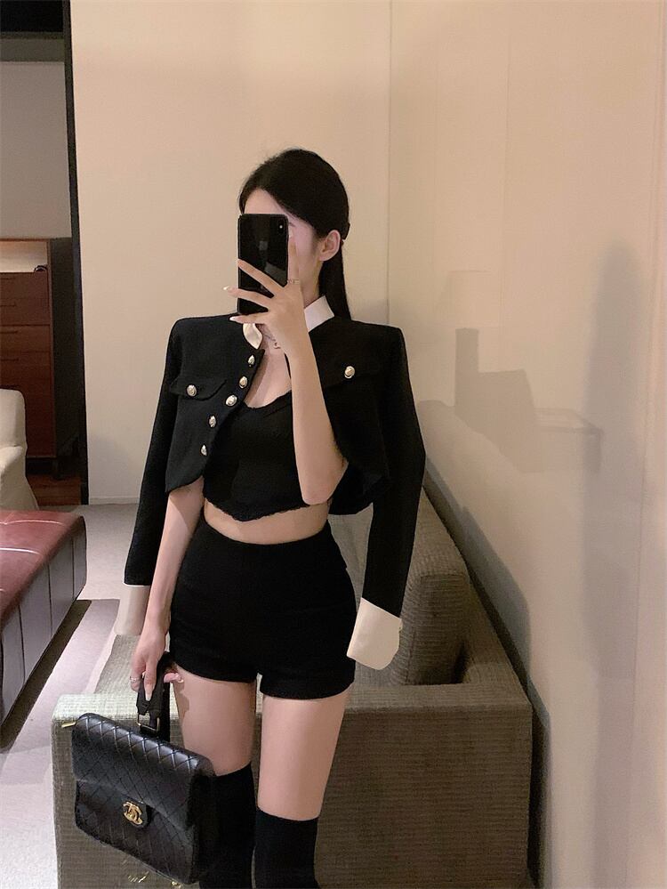 Xiaoxiangfeng長袖スタンドアップカラージャケット女性の秋の新しい黒のスリムな気質のステッチの短いハイエンドのトップ ショート ロング ブラック オータム 秋物 bstraw94519454021 | beaute25