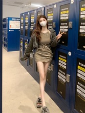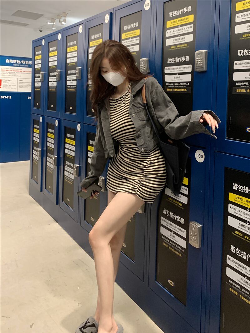 ホットストライプホルタードレス女性の夏の純粋な欲望風ノースリーブプリーツオープンバックセクシーなウエストバッグヒップスカート サマー 夏物 ピュア bstraw27009841739 | beaute25