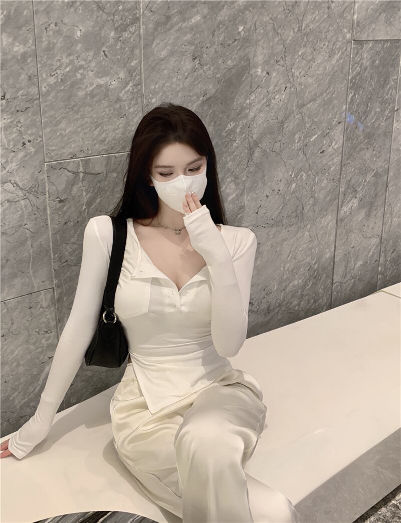 ピュアデザイア Tシャツ レディース センセーションニッチ 底入れシャツ 初秋 ホワイト ホットガール スリット セクシー タイト 長袖 トップス ロング オータム 秋物 bstraw20974078319 | beaute25