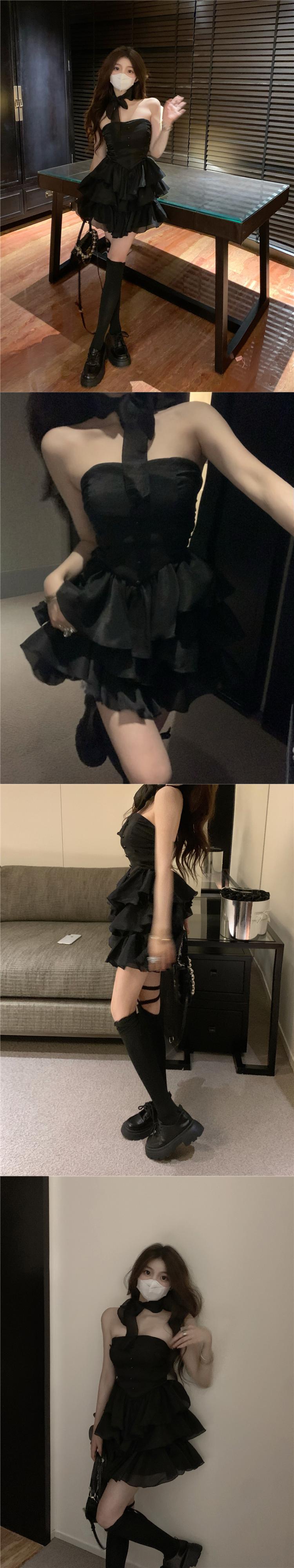 甘い女の子ワンショルダー チューブ トップ ドレス妖精夏純粋な欲望フリル スカート気質ふわふわケーキ スカート 大人ガーリー スウィート キュート カジュアル サマー 夏物 ピュア bstraw58163155796 | beaute25