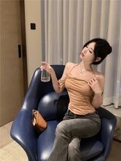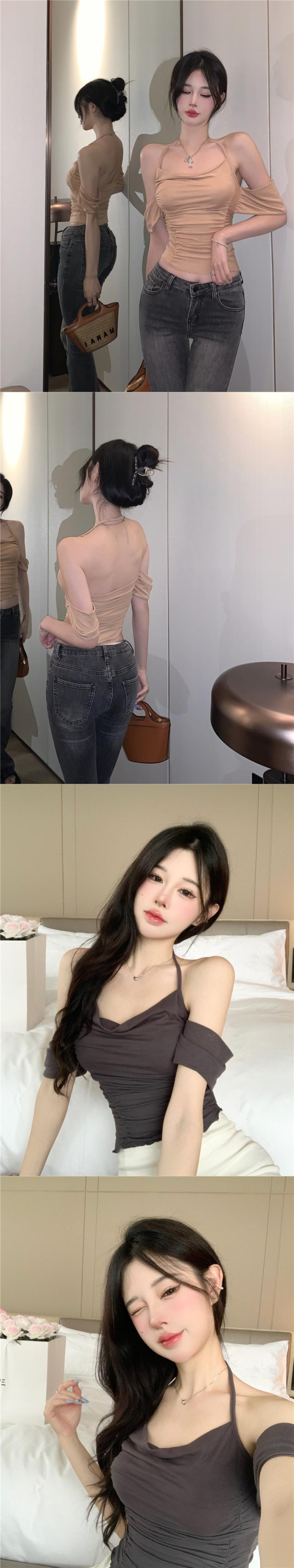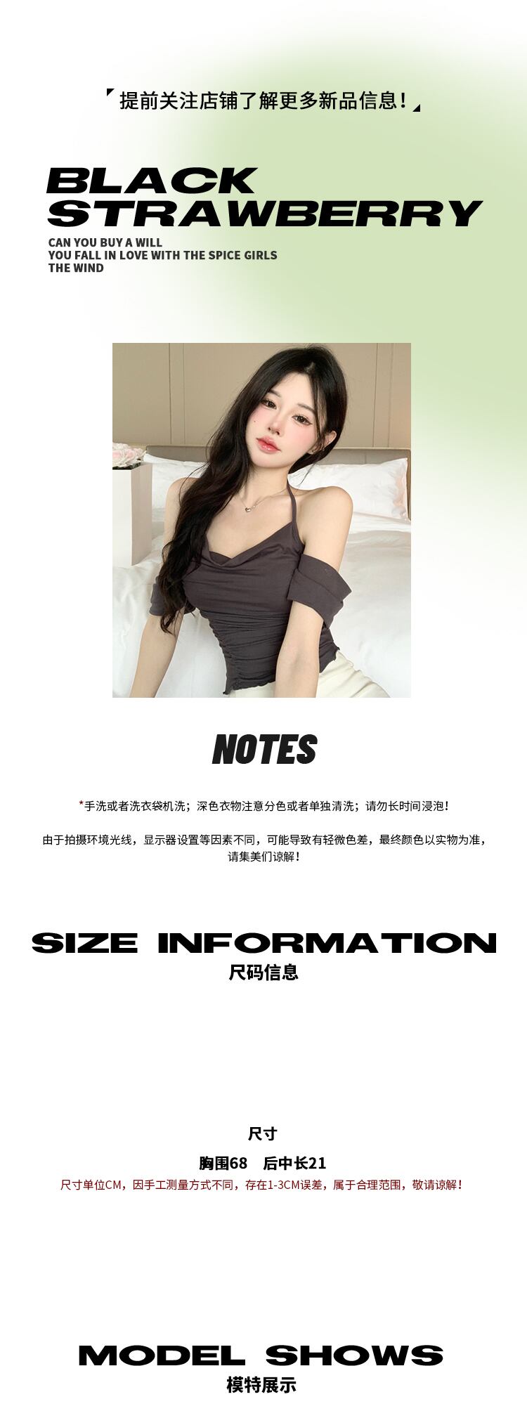 ホットハンギングネックセクシーな半袖Tシャツの女性の夏の純粋な欲望スタイルのショートスタイルのシックなデザインニッチバックレストップ サマー 夏物 ピュア bstraw98010408 | beaute25