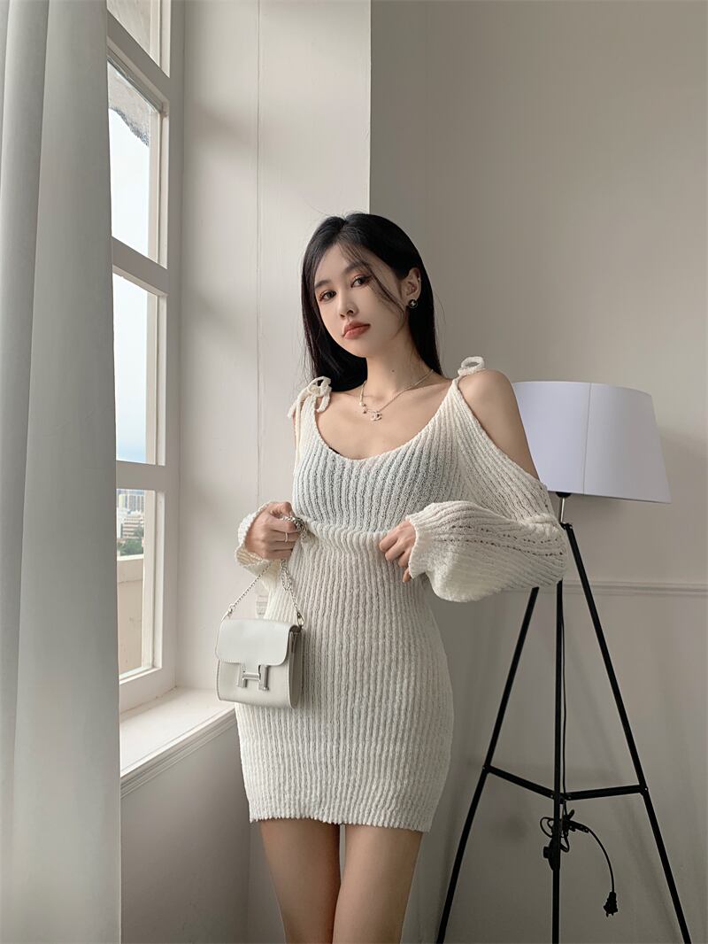 黒中空長袖ニット サスペンダー ドレス女性の秋薄いセクション日焼け止め V ネック スリム A ライン ショート スカート ロング ブラック オータム 秋物 Vネック Aライン bstraw98715058208 | beaute25