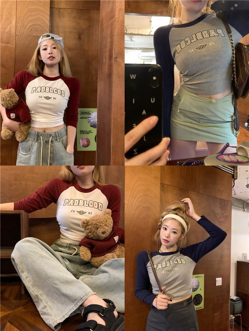 アメリカン レトロ Tシャツ 女性 インズ 潮 初秋 タイトフィット 対照的な長袖 スリムフィット 薄手インナー ボトムス シャツトップ ロング オータム 秋物 bstraw86604004558 | beaute25