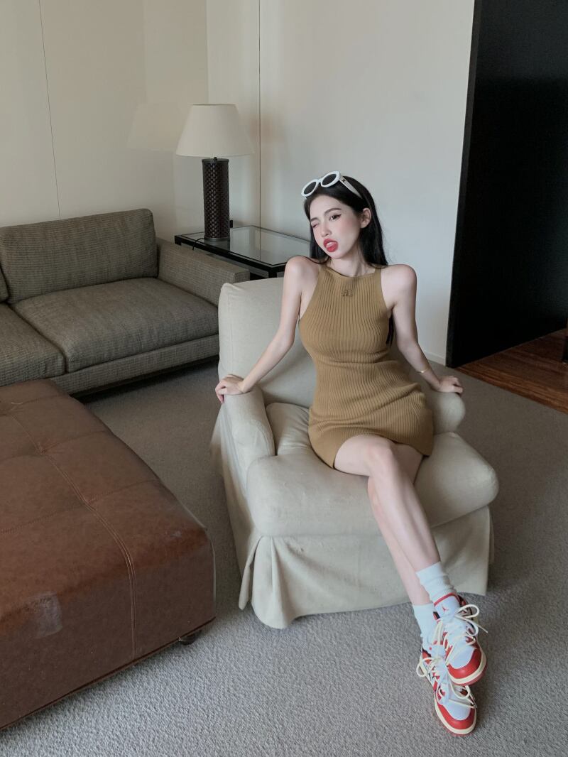 ノースリーブ ニット スリング ドレス女性の秋ショート スカート カーキ ホット ガール ベスト スリム フィット スリム パック ヒップ スカート オータム 秋物 bstraw29949630257 | beaute25