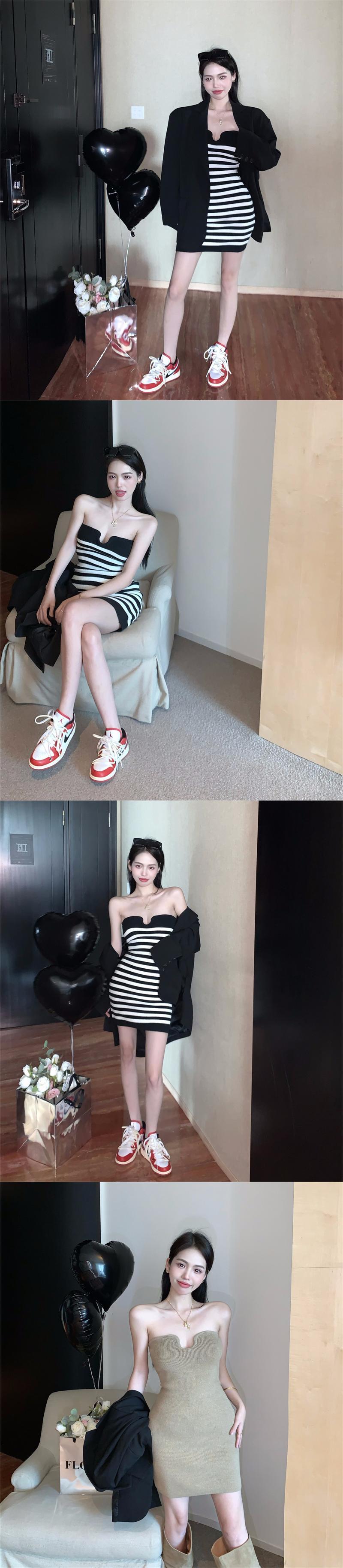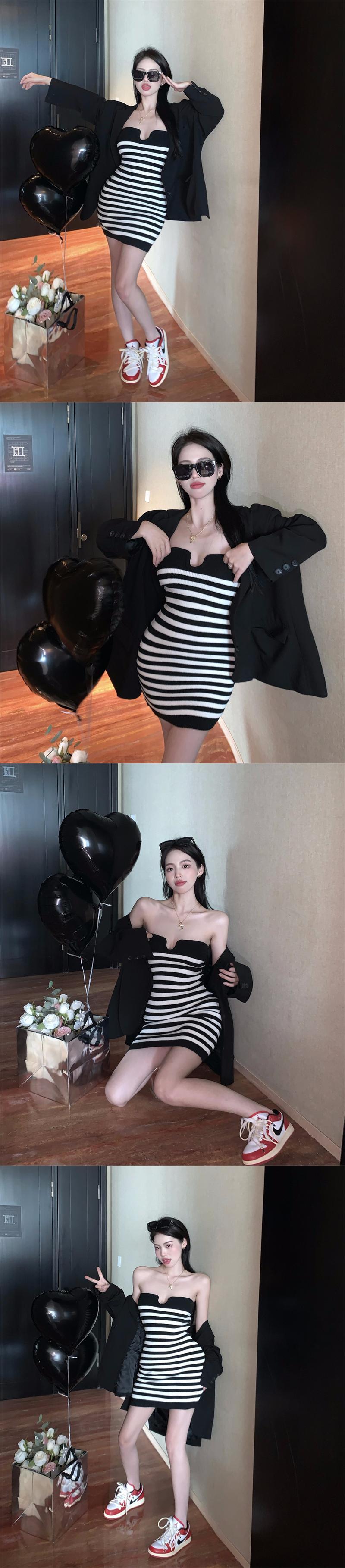 黒ニット胸ラップ ドレス女性の夏 2022 新しい短いスカート セクシーなノースリーブ ウエスト バッグ ヒップ スカート ショート ブラック サマー 夏物 bstraw8290834068 | beaute25