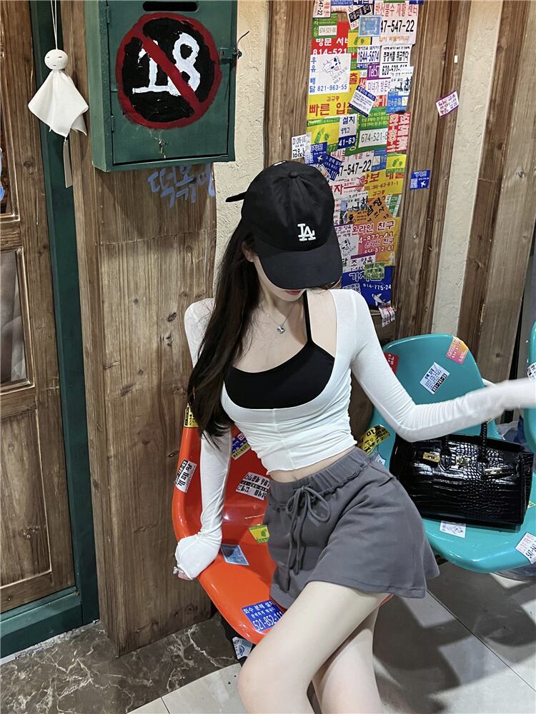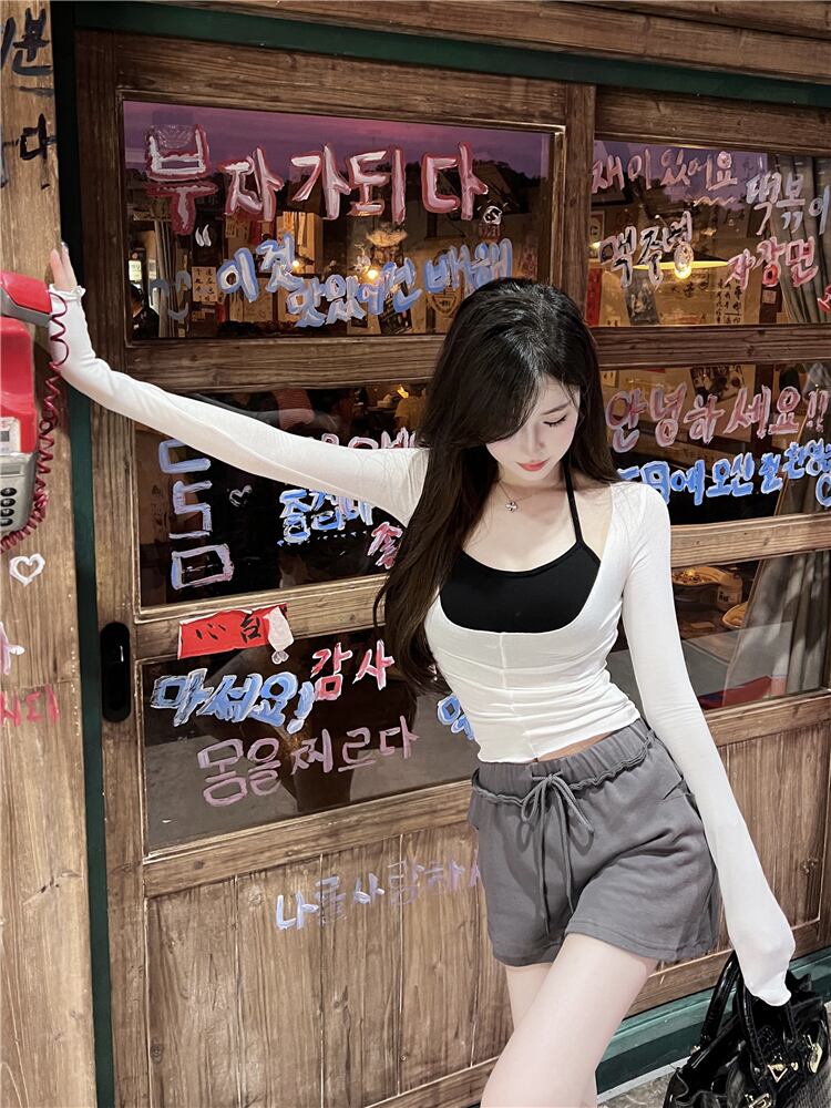 ホットuネックプリーツタイトフィッティング長袖Tシャツ女性の秋のデザインシックなセクシーで薄い短い日焼け止めトップ ショート ロング オータム 秋物 bstraw4684973221 | beaute25