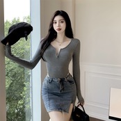 ピュアな欲望 ワンピース Tシャツ レディース 秋 Vネック セクシー インナー ボトムス シャツ イレギュラー タイトフィット 薄手 長袖 トップス ロング オータム 秋物 bstraw26030052989 | beaute25