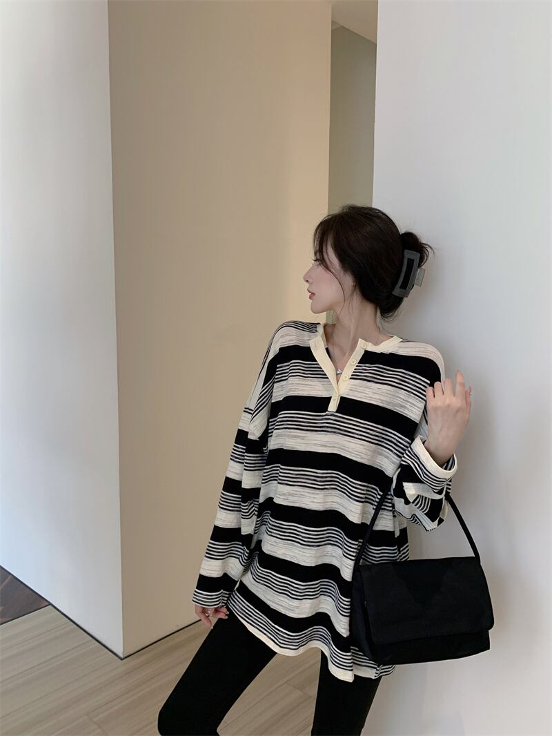 スパイスガールズ ストライプ 長袖 Tシャツ レディース 2022年初秋バージョン ゆったり ミドル丈 コントラストカラー 日焼け止め ブラウス トップス ロング オータム 秋物 bstraw25463464868 | beaute25