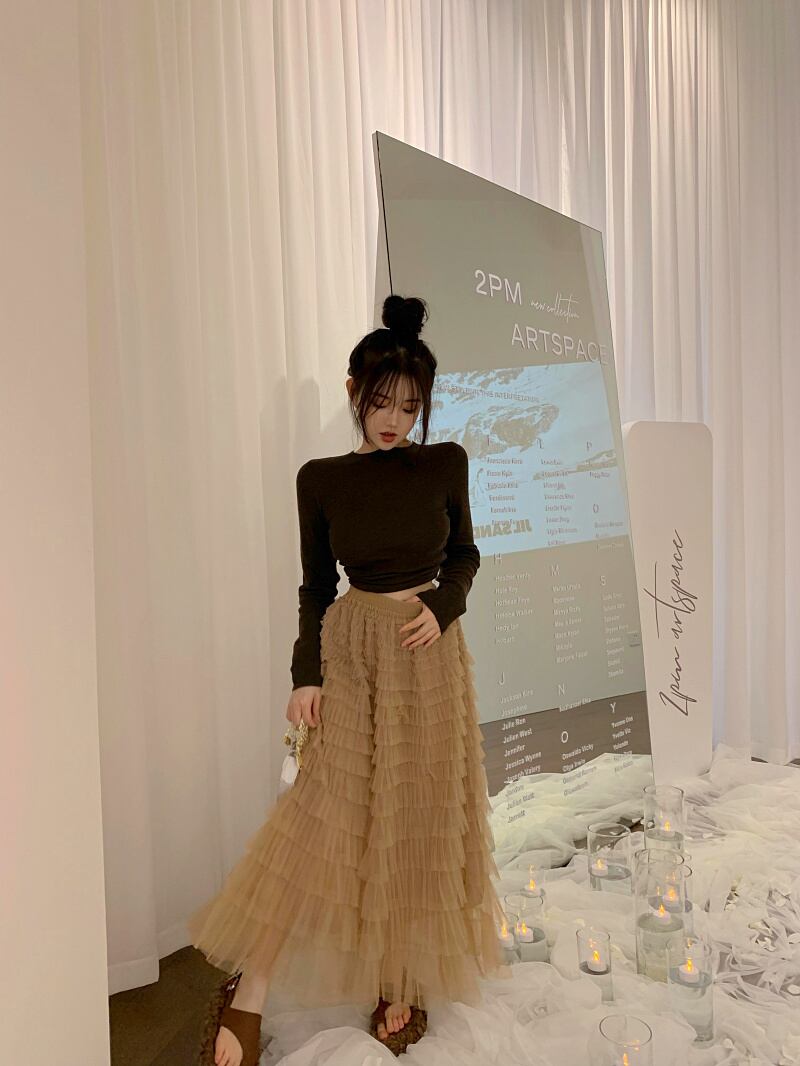 ホット メッシュ フリル スカート女性の秋 2022 新しいハイウエスト スカート ミドル丈レイヤード ケーキ スカート レッド オータム 秋物 bstraw6357872498 | beaute25