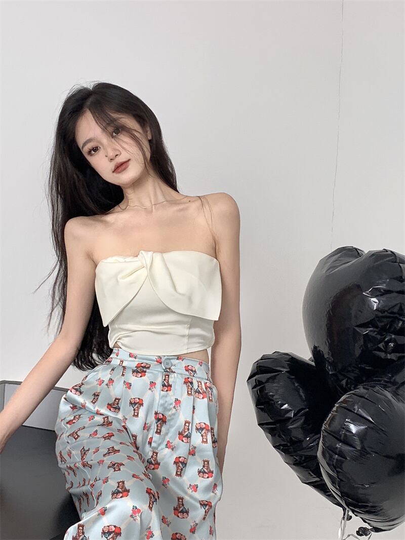 ボウノットチューブトップベストレディースサマーストラップレスセクシーアンチグレアスイートは胸を包み込み、ショートトップを着用 大人ガーリー スウィート キュート カジュアル 夏物 bstraw5053503827 | beaute25