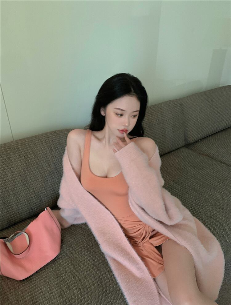 ピンク ミンク ベルベット ニット カーディガン女性の怠惰なスタイルのゆったりとした長袖セーター コート秋ミッドレングス ショール トップ ロング オータム 秋物 bstraw33294521819 | beaute25