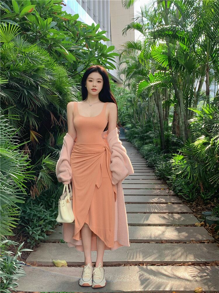 色:短いドレス,ピンクのビッグコート,ロングドレス