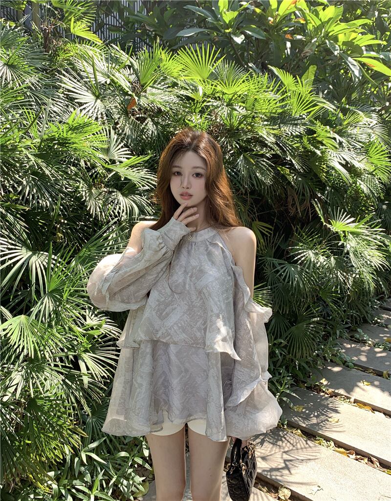 スウィートスパイスガール フリル長袖シャツ レディース 初秋 中空 ゆったり気質 日焼け止めシャツ 小さめトップス感 ロング 大人ガーリー キュート カジュアル オータム 秋物 bstraw40434136439 | beaute25