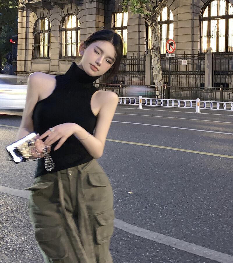 黒のセクシーな背中の開いたキャミソール女性の夏のストラップ ニット ユニークなユニークなニッチ トップ アウターウェア ブラック サマー 夏物 bstraw85914891657 | beaute25
