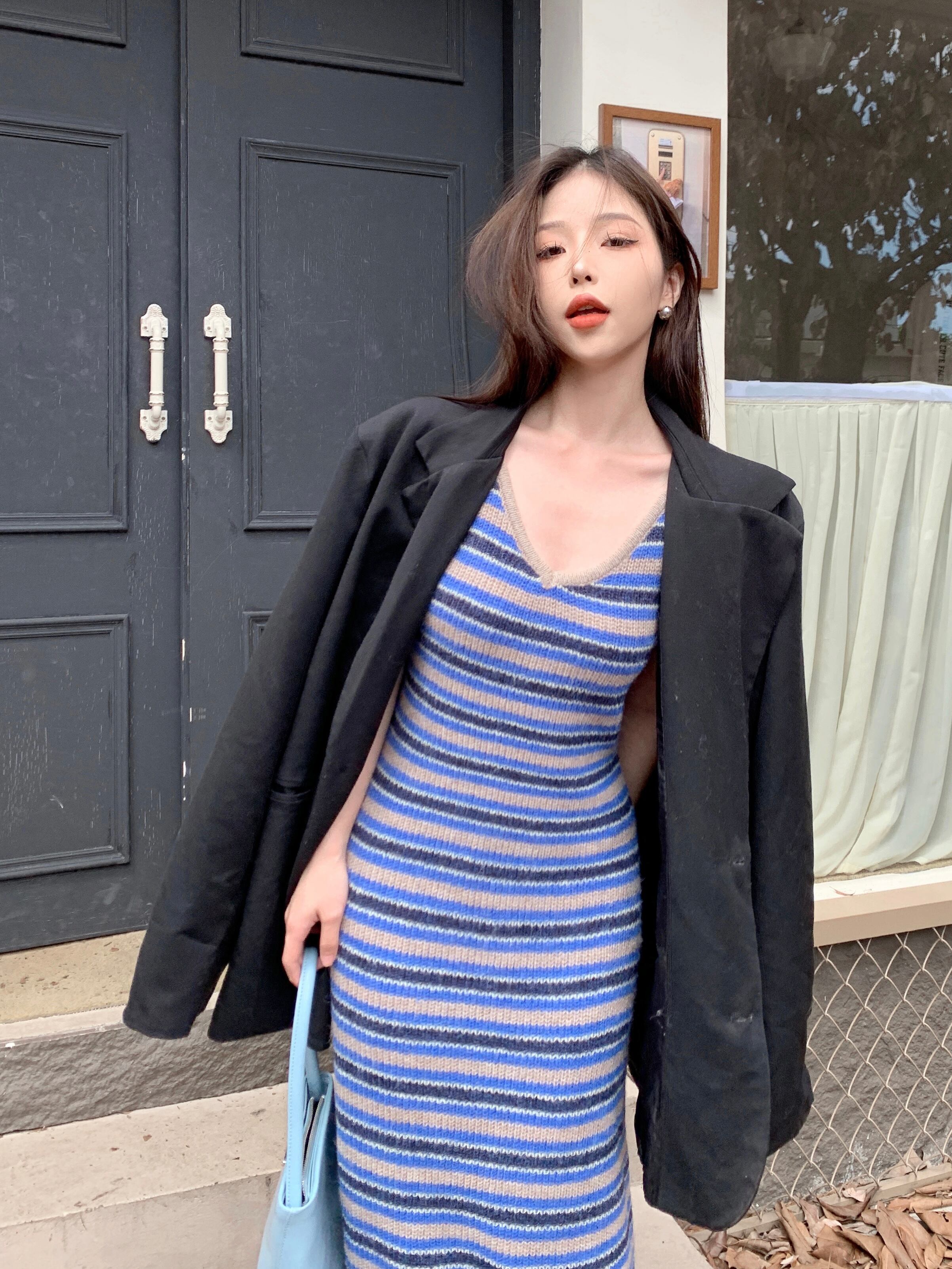 色:紫の,ブルーストライプ