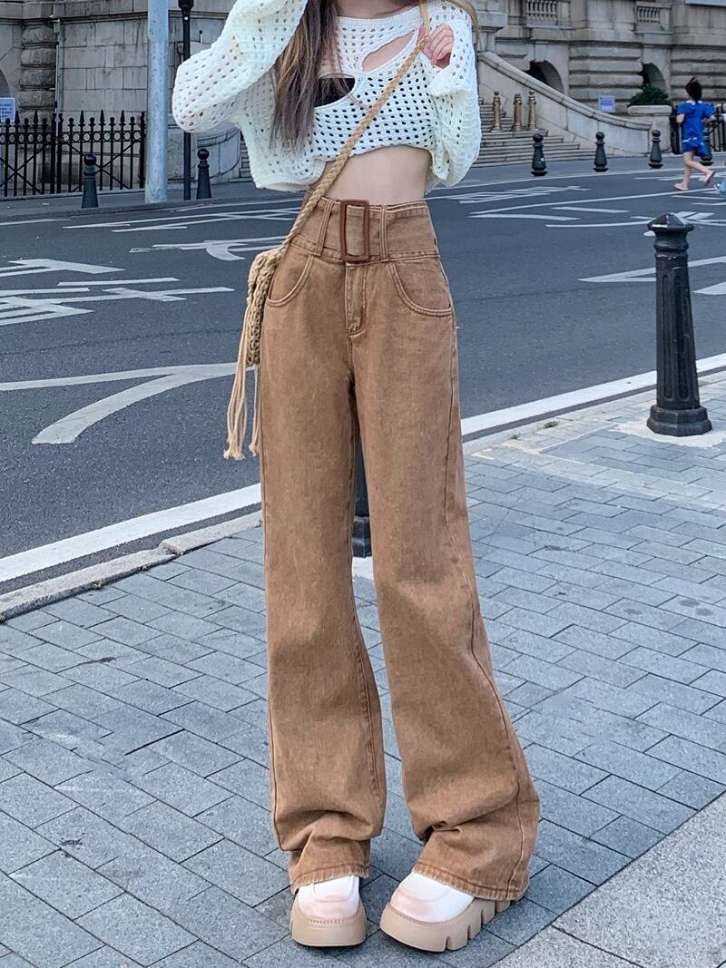 アメリカン レトロ ハイストリート ジーンズ レディース 秋 雰囲気 風 ドレープ ゆったり ハイウエスト ワイドレッグ パンツ モップパンツ ハイウェスト オータム 秋物 ワイドパンツ bstraw51321062315 | beaute25