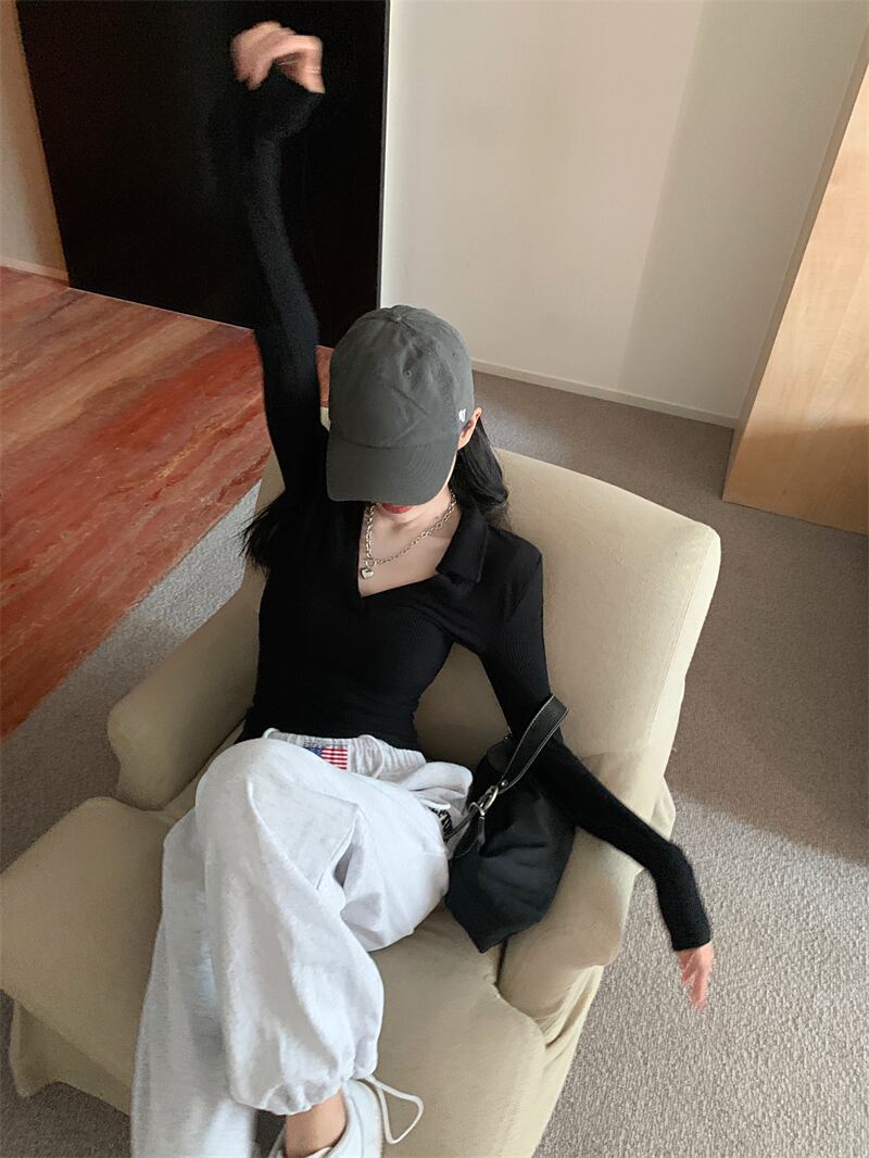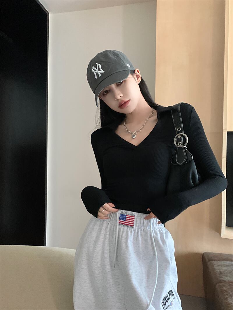 白 v ネック長袖ニット tシャツ女性の秋の新しい弾性セクシーなウエストスリム底入れシャツトップ ロング ホワイト エラスティック 伸縮 オータム 秋物 Vネック bstraw75675770822 | beaute25