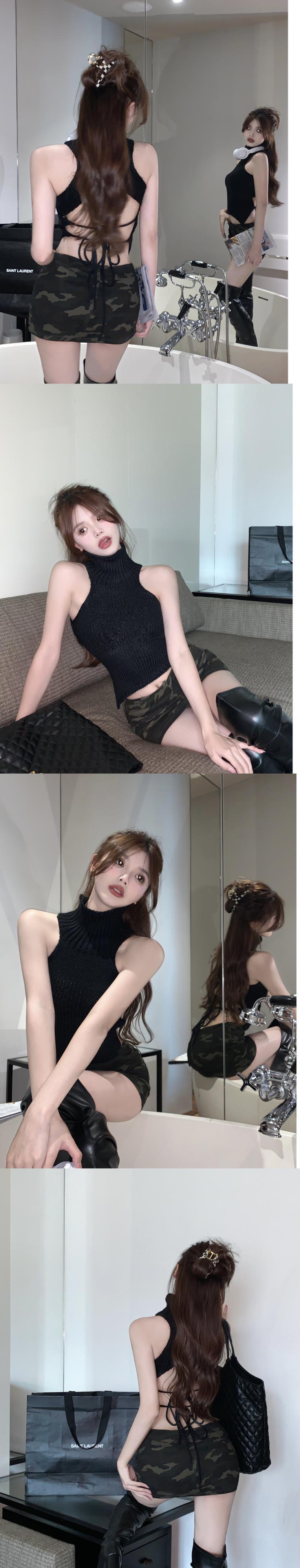 ホットセクシーなニットキャミソール女性の夏ノースリーブ掘りショルダーハーフハイネックレース背中の開いたシックなトップアウターウェア サマー 夏物 bstraw73385009900 | beaute25