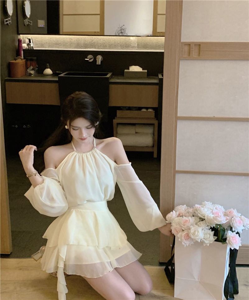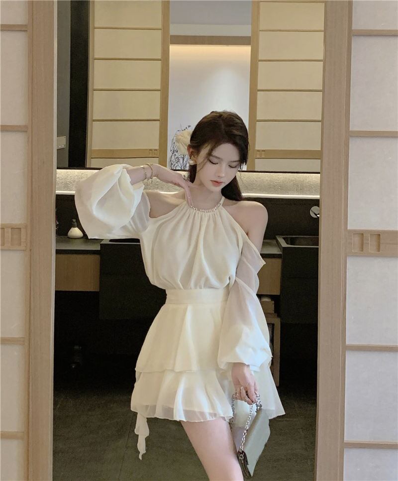 優しいスタイルのオフショルダー長袖シャツ女性の秋のスーツハイエンドレディ気質ハイウエストケーキスカート 2 点セット ハイウェスト ロング オータム 秋物 bstraw15050930754 | beaute25