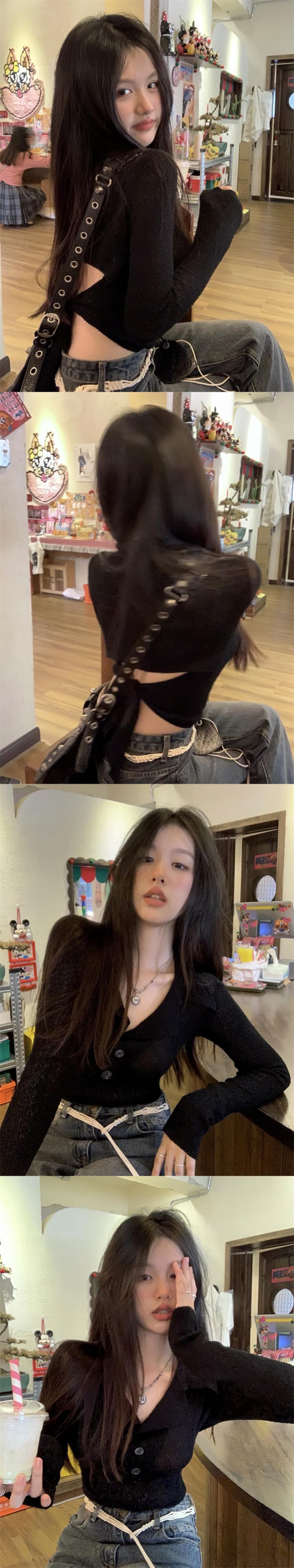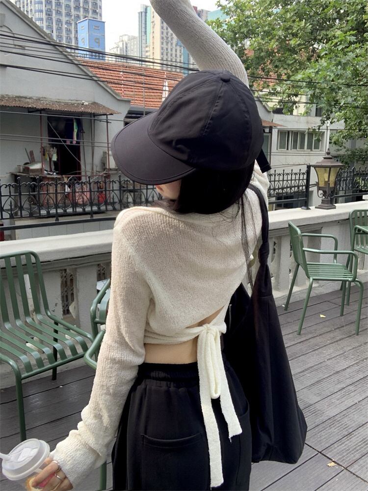 ブラックスリムフィットオープンバック長袖ニットセーター女性の秋の薄い純粋な欲望風日焼け止めセータープルオーバー包帯底入れトップ ロング オータム 秋物 ピュア bstraw72329868360 | beaute25