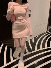 ピンクの甘いストライプ ニット カーディガン女性の秋ハイ ウエスト ショート クロップドへそタイトなセクシーな長袖ボトムス トップ ハイウェスト ロング 大人ガーリー スウィート キュート カジュアル オータム 秋物 bstraw97537265713 | beaute25