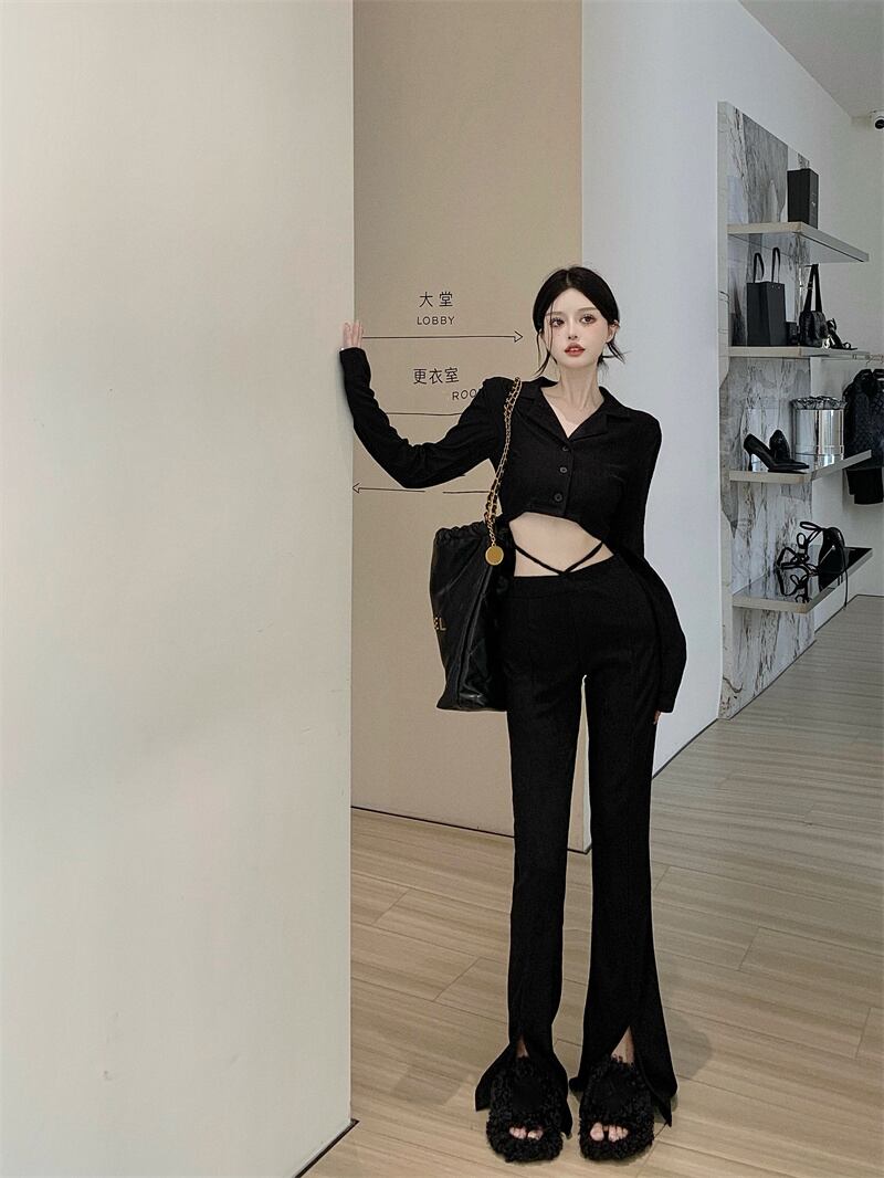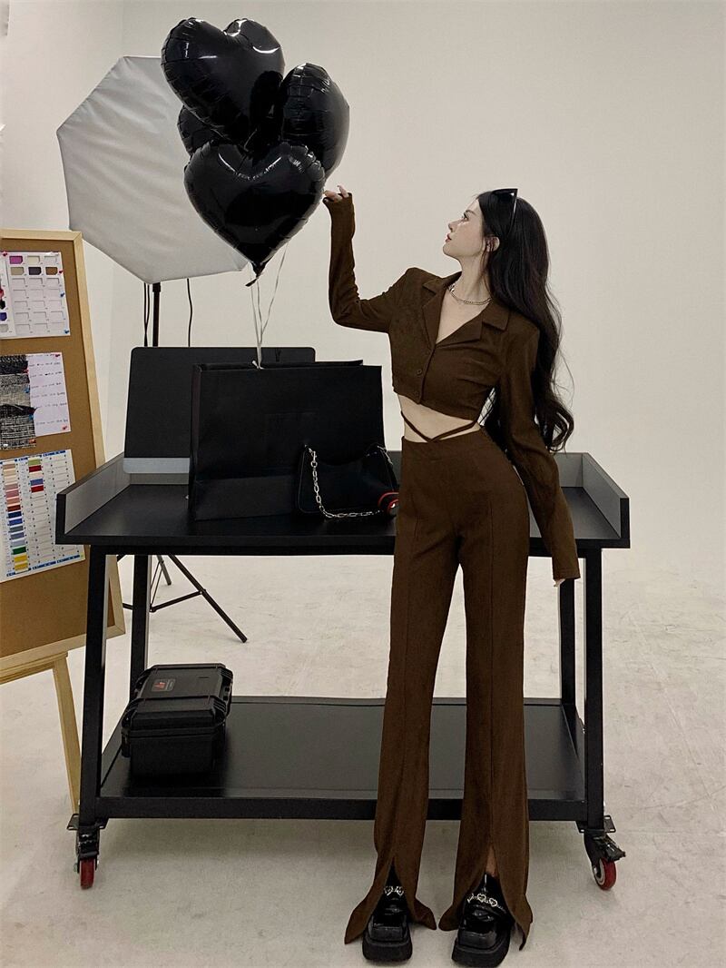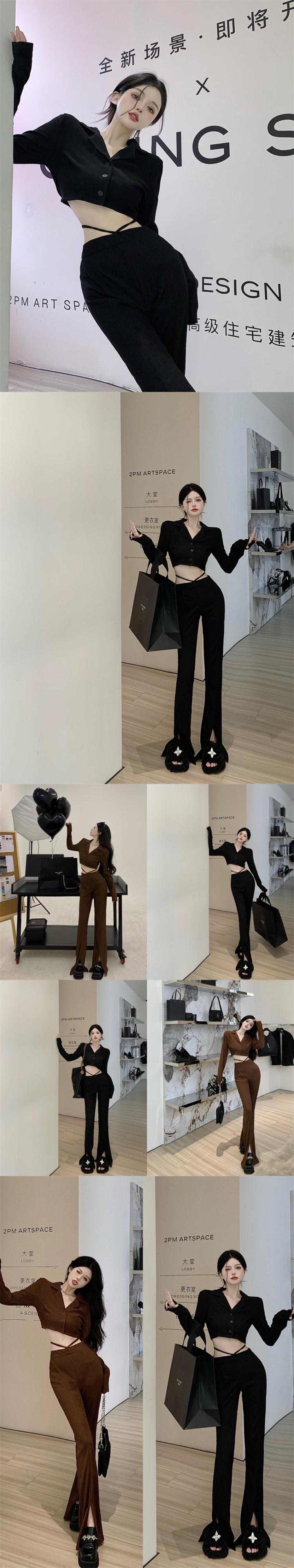 スパイスガールズ 長袖 シャツジャケット ショートカーディガン トップス レディース 秋のスーツ スプリットストレートパンツ 2点セット ロング オータム 秋物 bstraw97011890040 | beaute25