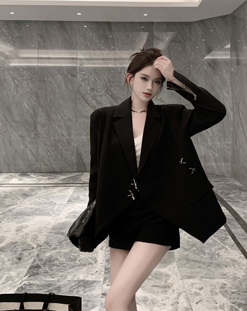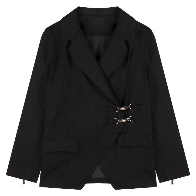 黒のショルダーパッド長袖スーツジャケット女性の秋のフライドストリートルーズハイエンド気質スーツミドル丈トップ ロング ブラック オータム 秋物 bstraw63443033079 | beaute25