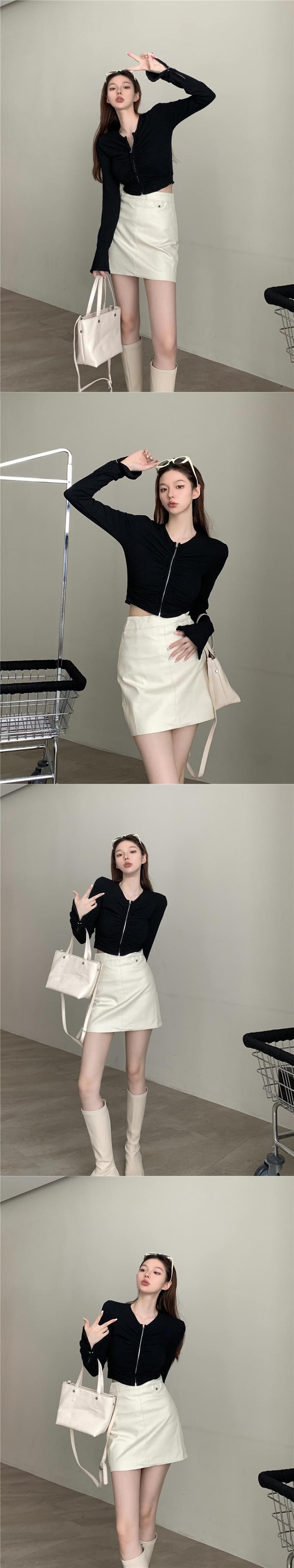 色:ブラックトップ,ホワイトトップ,コーヒートップ,黒革のスカート,アプリコットレザースカート,コーヒー色のレザースカート