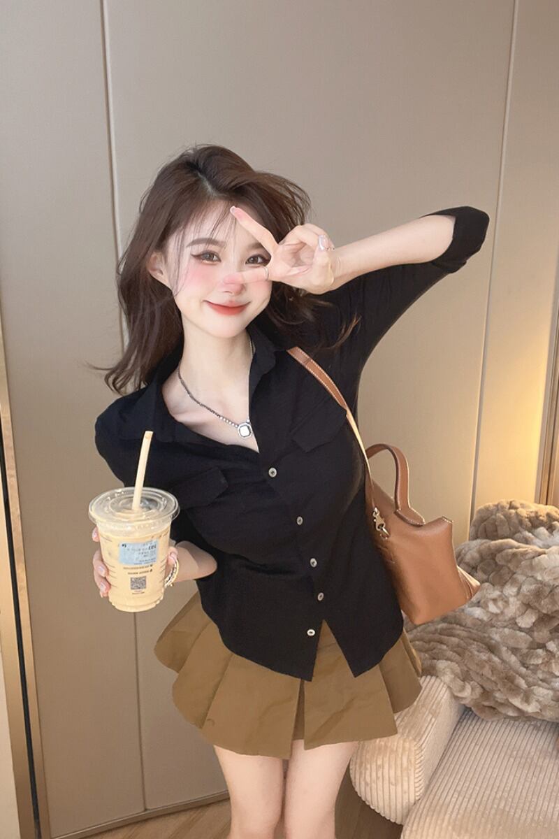 ブラック ポロネック 長袖 シャツ レディース 秋 デザイン センス ウエスト ウエスト スリムフィット 日焼け止め カーディガン シャツ トップス ロング オータム 秋物 Oネック bstraw1881601436 | beaute25