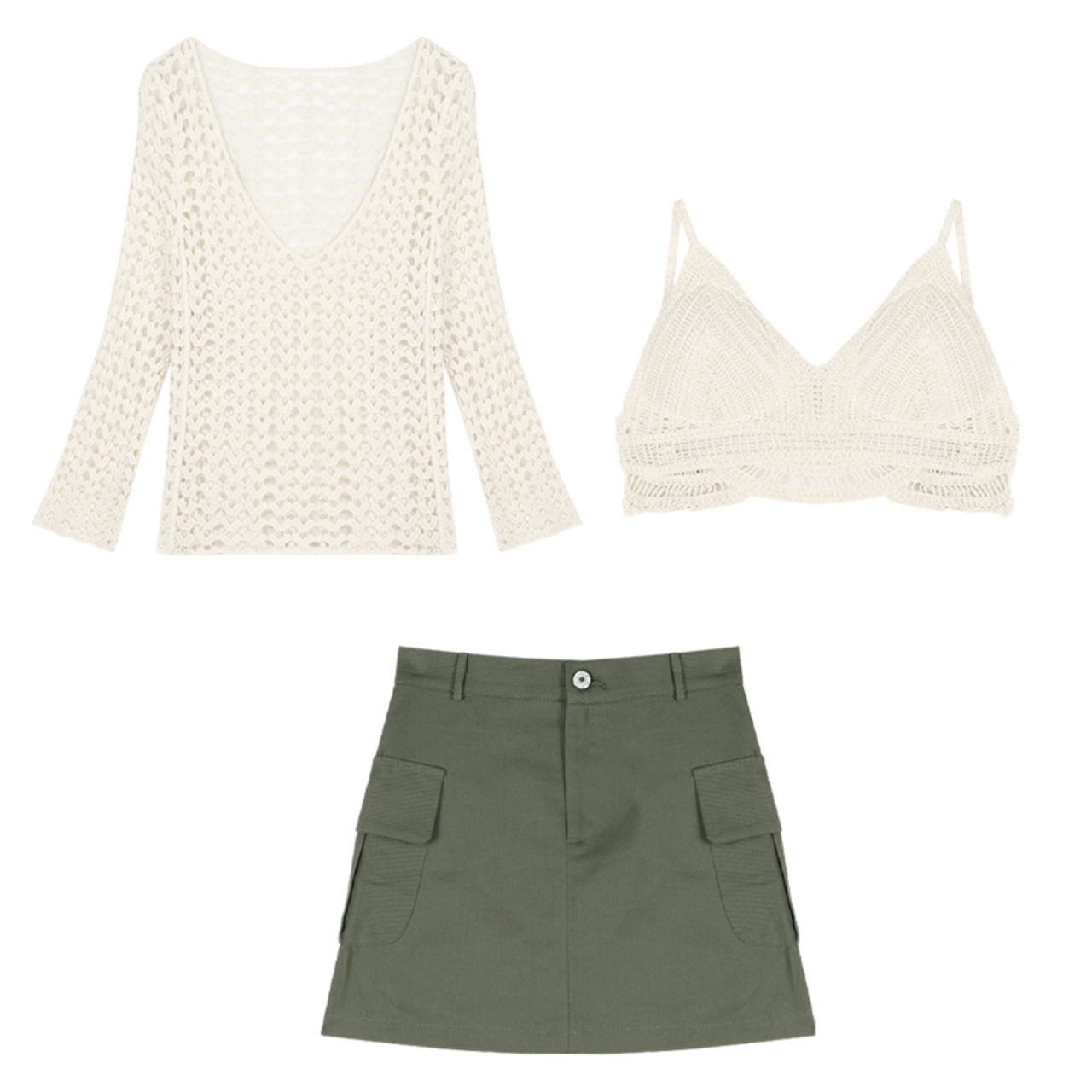 かぎ針編み中空長袖日焼け止めニットセーター女性の秋バージョン薄い v ネックルーズブラウスプルオーバートップ ロング オータム 秋物 Vネック bstraw21073306513 | beaute25