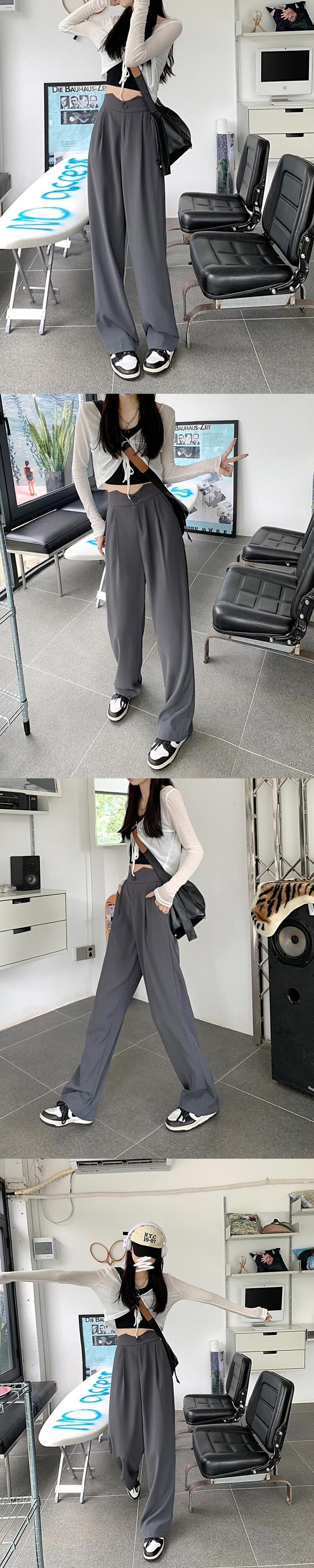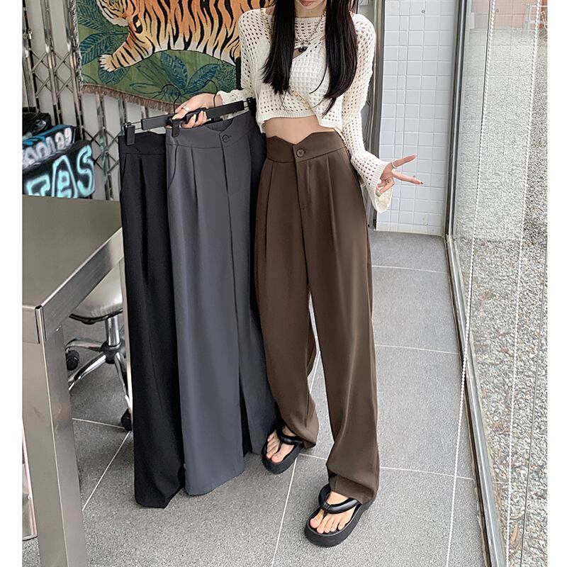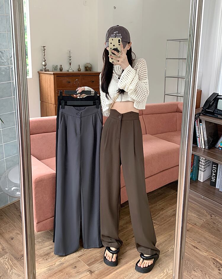 ウエストゴム縦ストレートカジュアルズボン女性の夏のハイウエストショー薄い小さなルーズパンツワイドレッグパンツズボン ハイウェスト エラスティック 伸縮 サマー 夏物 ワイドパンツ bstraw7030336666 | beaute25